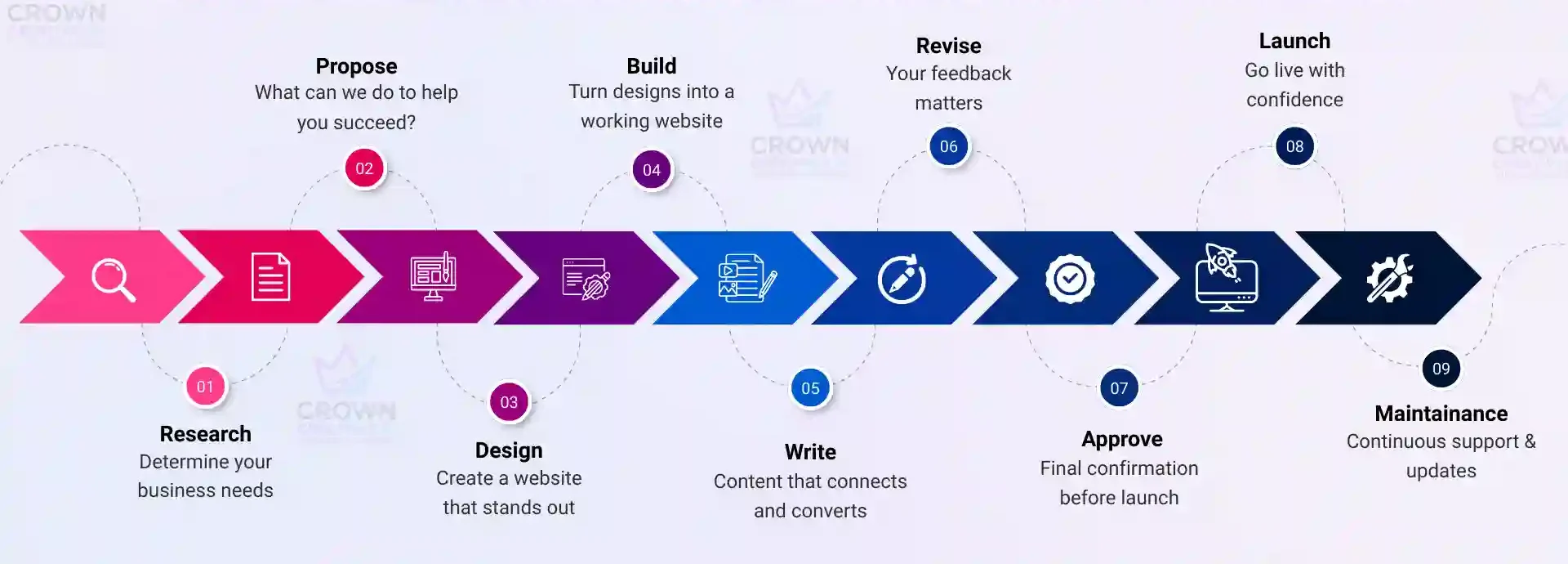 At Crown Creatives, we follow a proven website design and development process to deliver SEO-friendly, scalable websites across India.